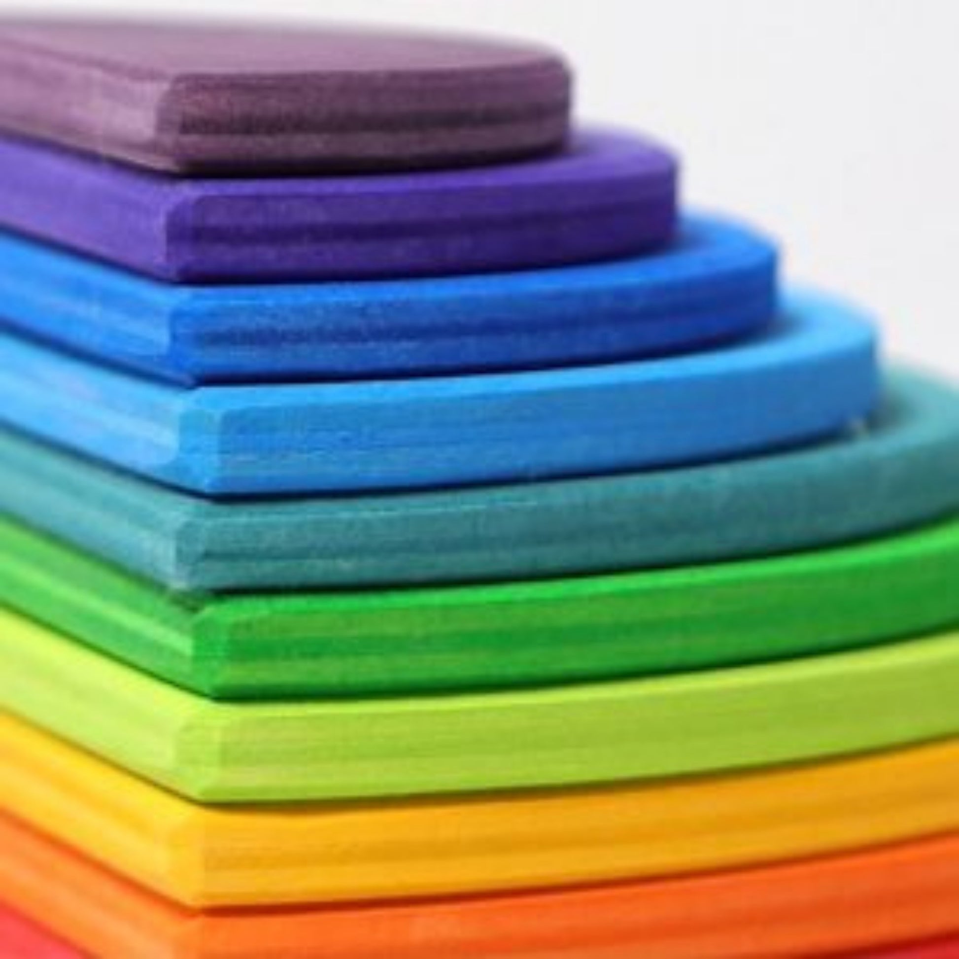Este arcoíris en forma de media luna ofrece nuevas formas de jugar y construir. Puede transformarse en túneles, cúpulas, montañas, cuevas o simplemente en una secuencia de piezas apiladas.
