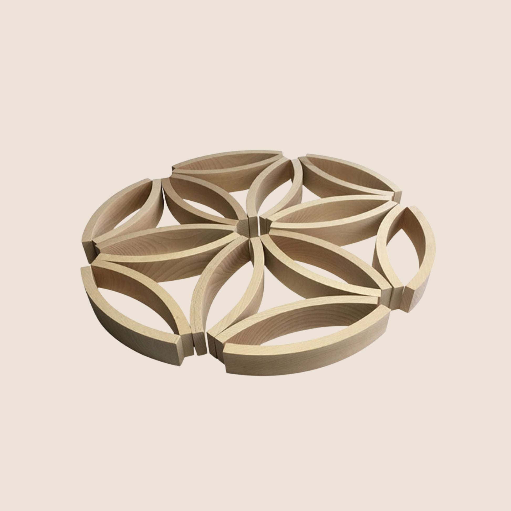 Con este set de 12 curvas de madera se pueden inventar caminos sinuosos, valles, carreteras, túneles o incluso corrientes de agua imaginarias.